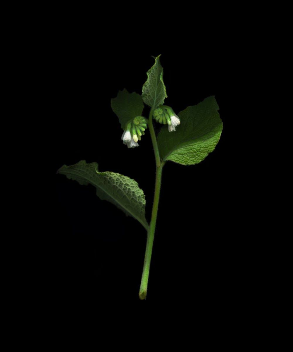 I didn’t realise until I started making high-resolution botanical photographs about seven years ago that comfrey flowers unfold in perfect spirals. While spirals are found everywhere in the natural world, I've never seen more perfect examples in a plant.